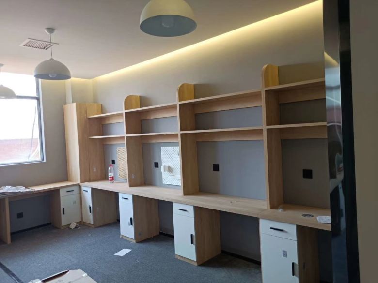 鐵一中補習學校此次訂做的柜子比較多,尤其像儲物柜和公寓床,難度較大,而在博菲克定制家具廠的工人嫻熟的加工后,一張張完美的家具全都完美出爐。下面,西安辦公家具廠家小編帶大家到安裝現(xiàn)場看一看吧!