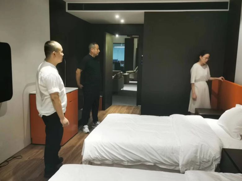 國慶假期期間,當(dāng)很多公司放假后人們都攜帶一家老小外出游玩的時候,來自商洛丹鳳縣的酒店客戶放棄休假時間專程來到西安酒店家具生產(chǎn)廠家排名前三的博菲克酒店家具工廠,在廠里等候已經(jīng)的博菲克總經(jīng)理?xiàng)钚怯H自熱情的接待。