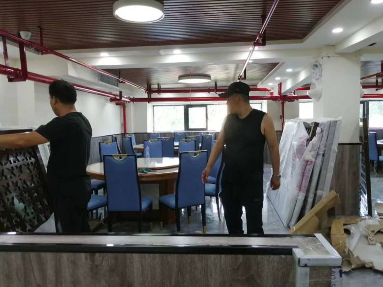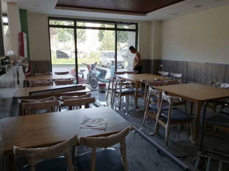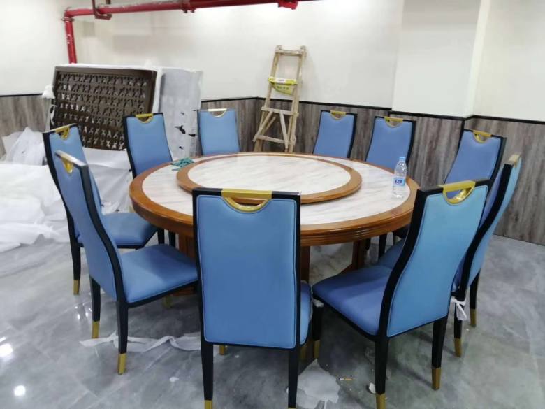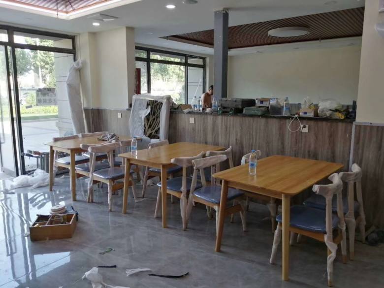 下圖為現(xiàn)場安裝餐桌椅實拍: