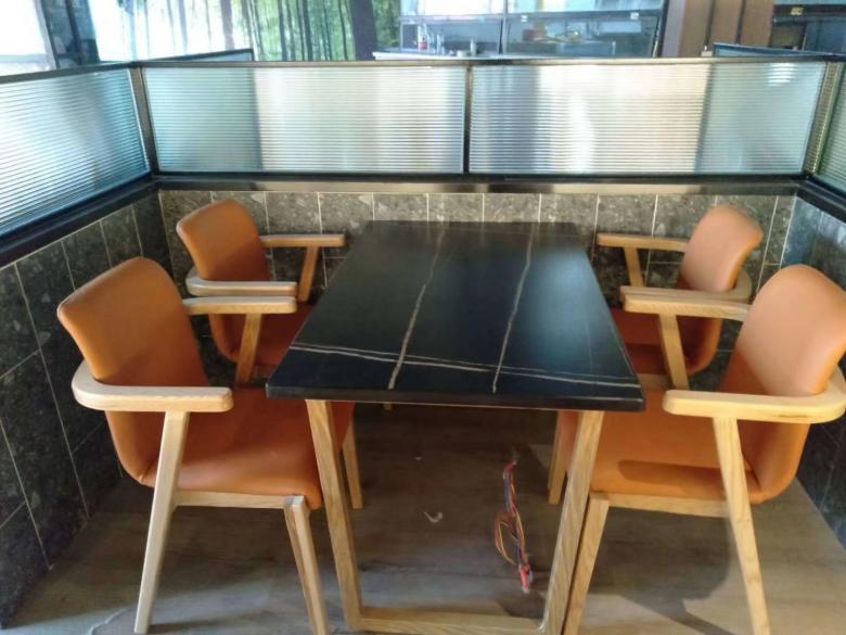 下圖為我廠為朝陽門江湖菜飯店定制的一批餐桌椅及卡座沙發(fā),真實案例,所有工程案例接受實地考察,真金不怕火煉,用實力說話!