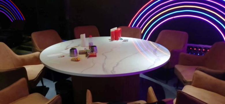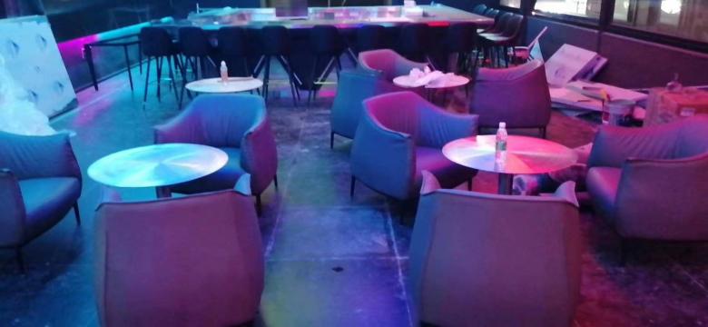 下圖是由博菲克定制家具廠為SHARK CLUB音樂餐廳定做的一批餐桌椅和吧臺,照片是在安裝之后現(xiàn)場拍攝的。