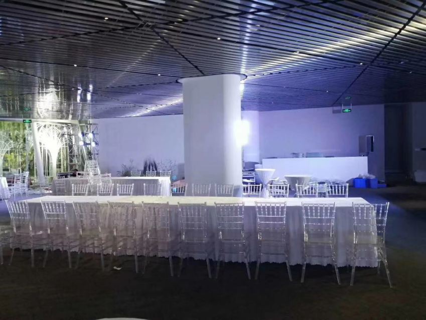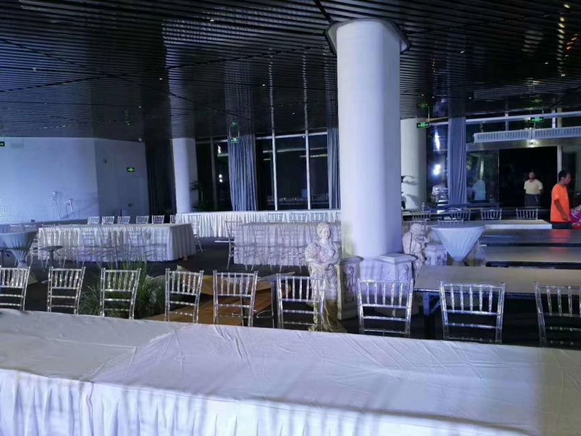 這是延安某酒店宴會大廳在西安博菲克家具廠定做的一批餐桌椅,圖片是在交貨現場實拍。