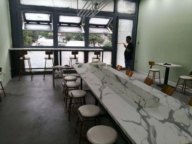 我廠承接的西安鮮螺螺螄粉餐館定制餐桌椅工程正式交工,家具安裝完畢后,大理石臺(tái)面餐桌看上去非常的上檔次,客戶對(duì)于我廠生產(chǎn)的餐桌椅給予了高度贊揚(yáng)。