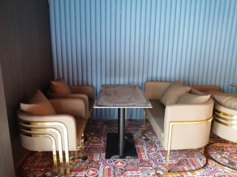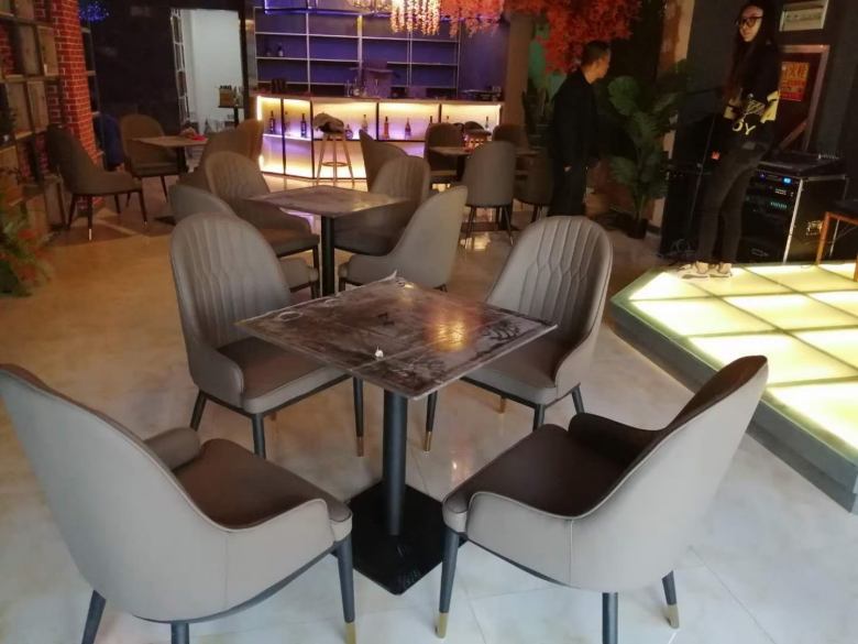 無烊音樂餐吧采購的桌子采用巖板臺面和鐵藝桌腿組合而成,巖板餐桌椅大氣耐用,特有的石材色調(diào)能夠迅速提升店面的檔次??ㄗ嘲l(fā)定制以及沙發(fā)椅均有嚴格要求,我廠依據(jù)客戶需求完美呈現(xiàn)出了家具成品。