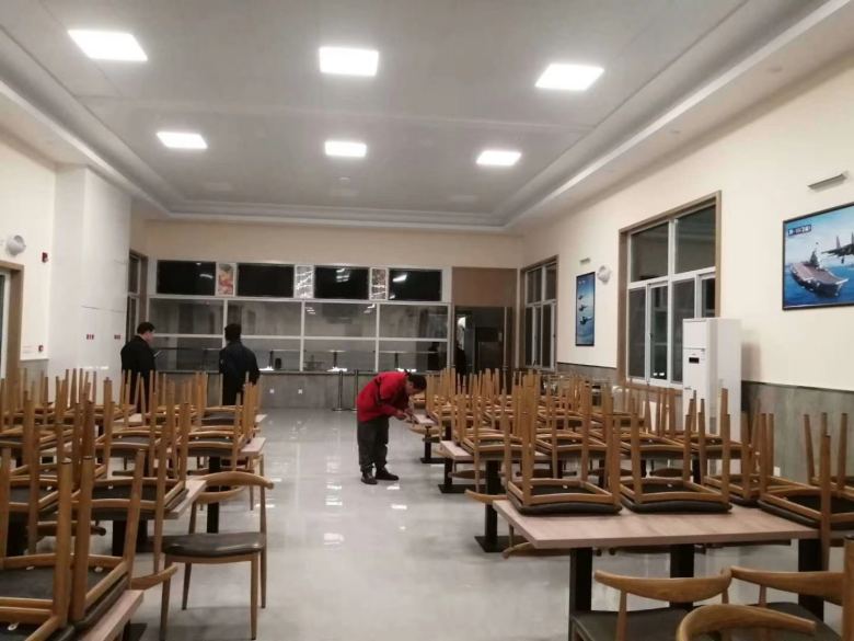 西安慶安公司員工餐廳食堂餐桌椅進(jìn)場(chǎng)交貨