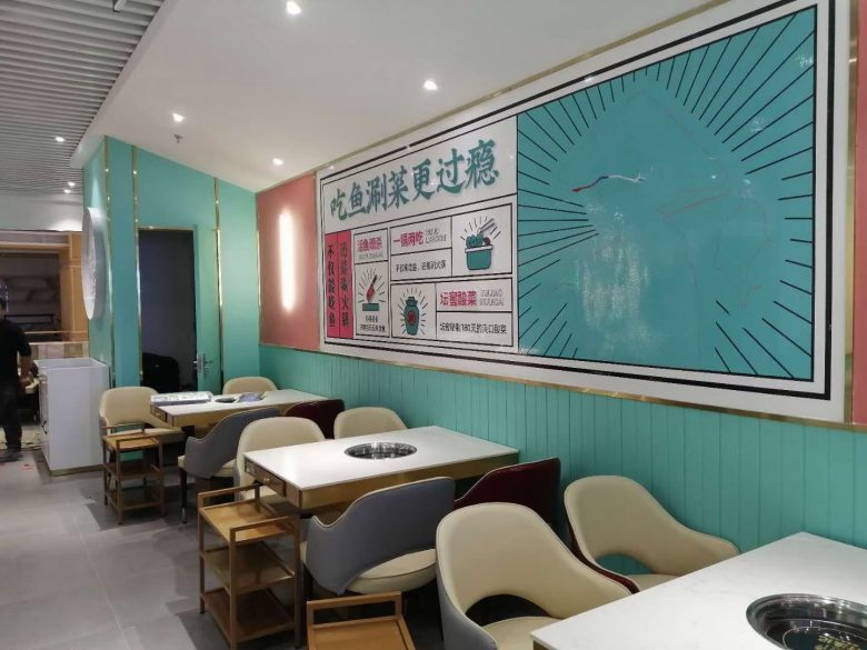 西安竹漁記酸菜魚火鍋桌椅廠家交付現場