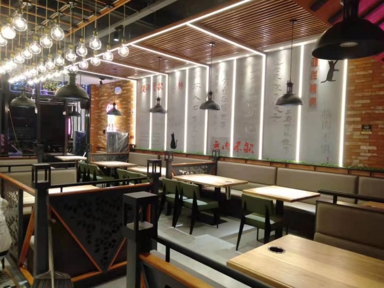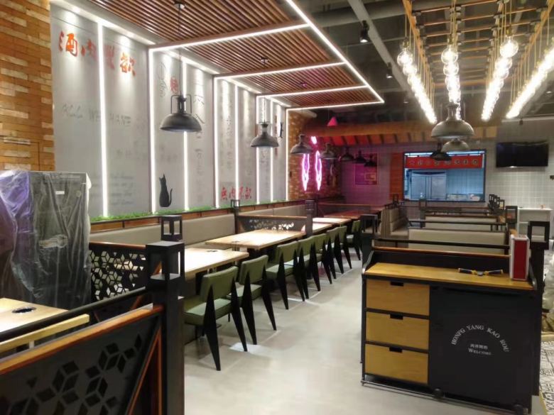 西安鴻洋烤肉餐桌餐椅卡座沙發(fā)家具案例