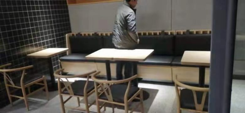 袁記肉夾饃餐廳餐桌椅及卡座沙發(fā)采用黑色皮革軟包,與整店裝修風(fēng)格形成很好的結(jié)合,給食客營(yíng)造出一種獨(dú)特的古香古韻的環(huán)境!在安裝現(xiàn)場(chǎng),博菲克家具廠工人仔細(xì)按照?qǐng)D紙組裝和擺放,另外一組認(rèn)真把安裝好的餐桌椅排列整齊,使得整個(gè)餐廳頓時(shí)煥然一新!