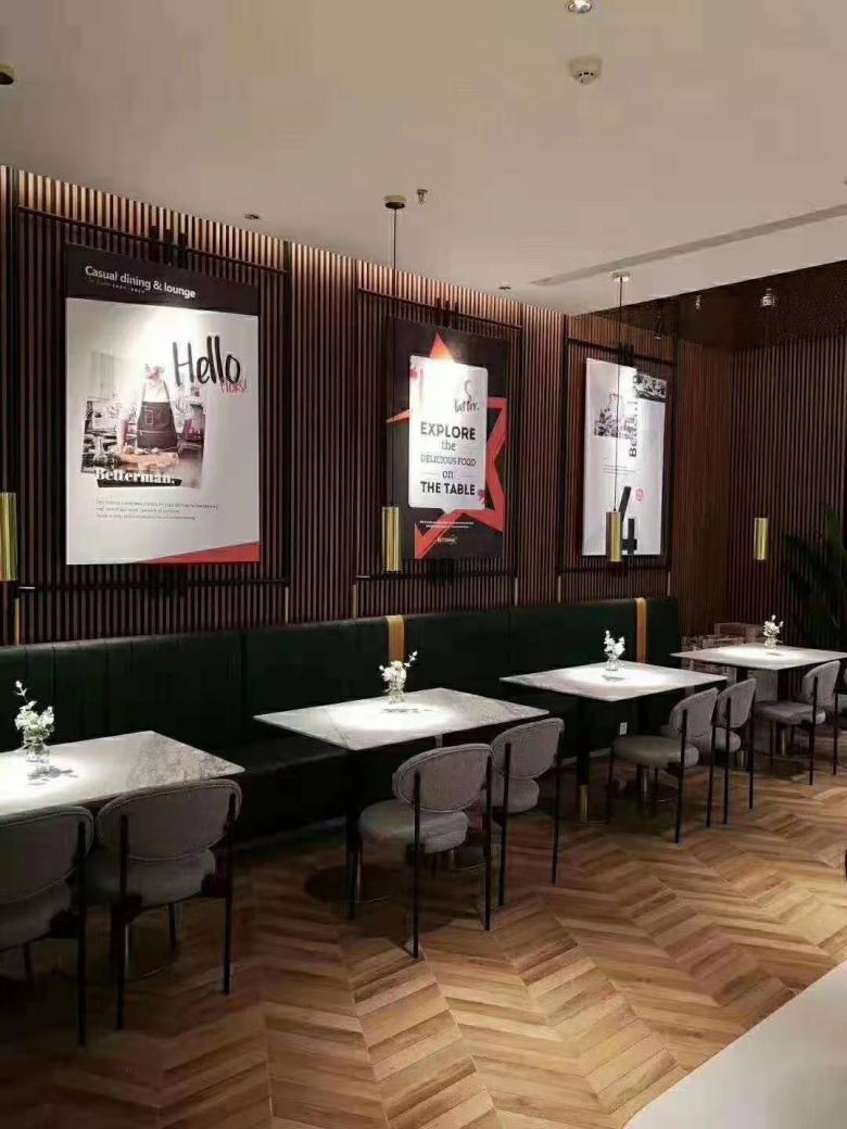 西安意風(fēng)小鎮(zhèn)西餐廳就屬于后者。客戶清楚自己店面的需求,因此,對(duì)于西安餐桌椅批發(fā)市場(chǎng)里面的廉價(jià)餐桌椅,她壓根就沒(méi)有考慮。而我廠業(yè)務(wù)經(jīng)理在介入這個(gè)項(xiàng)目之后,通過(guò)多次溝通,明白了客戶的真實(shí)需求。李總喜歡輕奢風(fēng)格的餐桌,恰恰在展廳里有一款簡(jiǎn)約風(fēng)格的巖板餐桌瞬間捕獲了她的心,這款巖板桌子非常大氣有質(zhì)感,李總毫不猶豫的就選定了它!后面,李總也看上了我廠擺放的餐廳卡座沙發(fā)樣品,這是一款特別流行的高背板款式,是西餐廳里面使用最多的款式了。