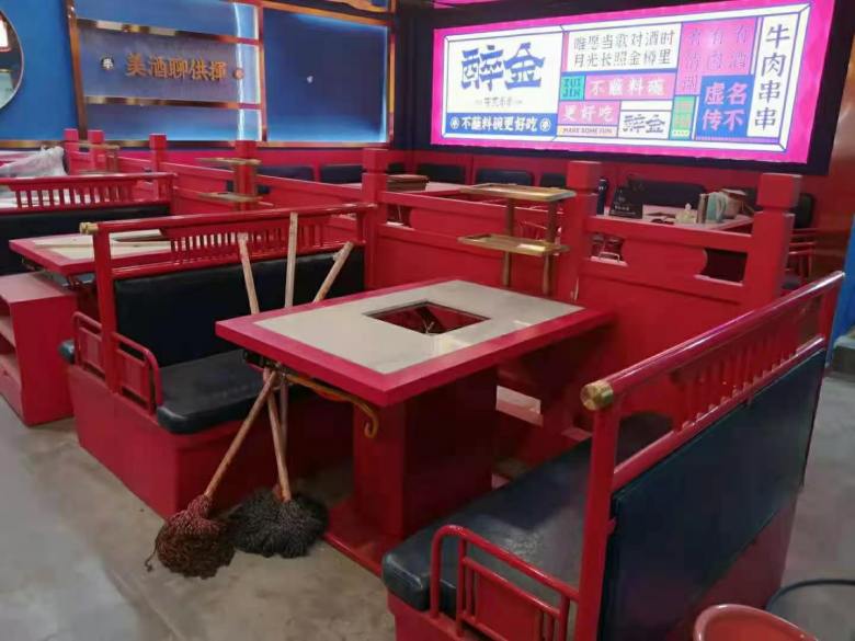 西安醉金牛肉串串卡座沙發(fā)火鍋桌椅定做工程