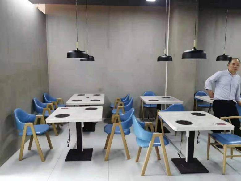 西安鮮辣道川味火鍋店大理石自助火鍋桌椅定做案例