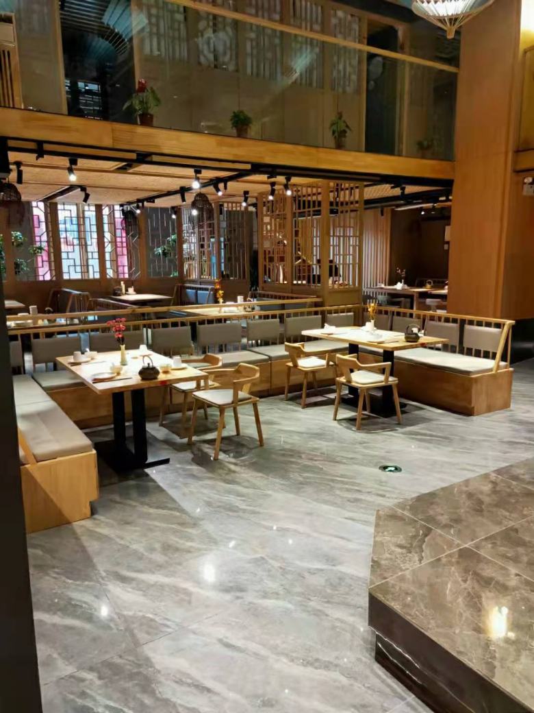 西安曲江和湘源正宗湘菜館卡座沙發(fā)餐桌椅設(shè)計(jì)定制案例
