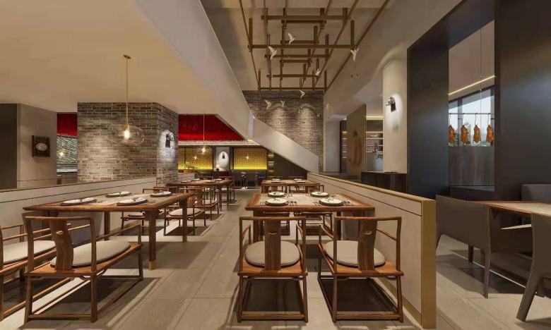 京緣·長安古法果木烤鴨餐廳項目地址位于西安雁塔西路美居酒店樓下,從客戶提供的效果圖可以直觀的看出,這是一家非常有品位的餐廳。