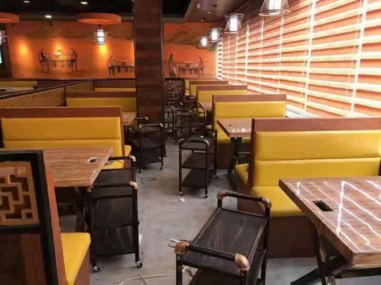 天水市蜀香一品火鍋桌椅卡座沙發(fā)交貨現(xiàn)場