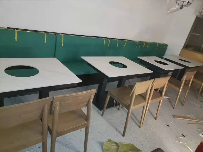 西安映巷簡骨藕湯火鍋桌椅卡座沙發(fā)交貨現(xiàn)場