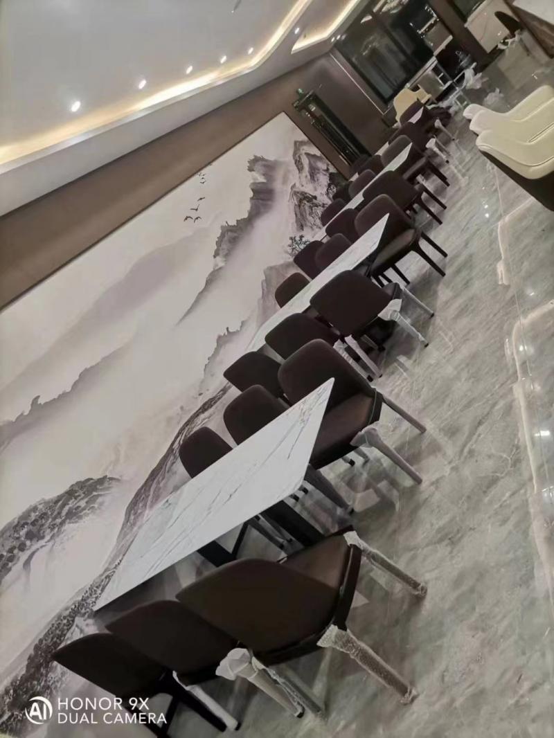 我們業(yè)務(wù)經(jīng)理在和紅星美凱龍推薦款式的時(shí)候,結(jié)合食堂吃飯人多、就餐頻繁、產(chǎn)生油污等特點(diǎn),強(qiáng)烈建議客戶使用巖板餐桌,它不僅耐高溫、防油污滲透,而且質(zhì)地堅(jiān)硬、美觀大方、持久耐用、物美價(jià)廉。