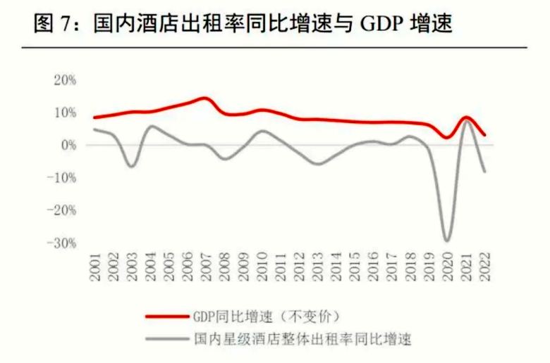 我們認(rèn)為 GDP 對酒店行業(yè)的影響在逐漸減弱,行業(yè)內(nèi)部供需結(jié)構(gòu)調(diào)整對酒店行業(yè)更重要。從中、美兩國入住率同比增速和 GDP 增速趨勢可以看出,兩者呈現(xiàn)分階段相關(guān)的特點(diǎn)。2008-2009、2010-2012 兩個(gè)階段入住率同比增速和 GDP 增速相關(guān)性較大,2013 年之后影響入住率的主要因素轉(zhuǎn)向行業(yè)內(nèi)供需結(jié)構(gòu)調(diào)整,疊加限三公、疫情等突發(fā)事件影響,相關(guān)性逐漸減小。