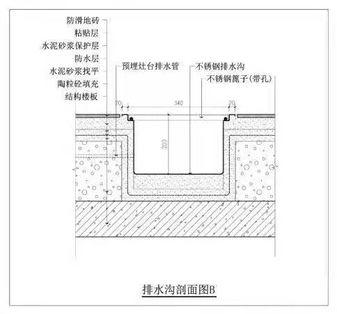 常規(guī)地漏由于排水管徑較小,無法滿足排水需求,而且廚房排水有很多油漬,容易堵塞地漏,這個(gè)時(shí)候就需要制作廚房專用的排水溝設(shè)置。當(dāng)然有些杠精就會(huì)說把地漏管徑變大,不是就不需要做地漏了嗎?那我們看一張圖片: