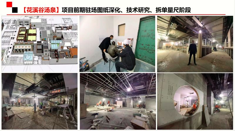 在得知這么重要的客戶(hù)要過(guò)來(lái)考察,公司領(lǐng)導(dǎo)也格外重視。下班前便通知設(shè)計(jì)部、項(xiàng)目部主管開(kāi)會(huì),認(rèn)真研究討論花溪谷湯泉的固裝及異型木作家具技術(shù),提取施工不確定工藝材質(zhì)作為次日見(jiàn)面溝通的重點(diǎn),并安排設(shè)計(jì)師連夜提量對(duì)已經(jīng)明確的家具部分做報(bào)價(jià)單。